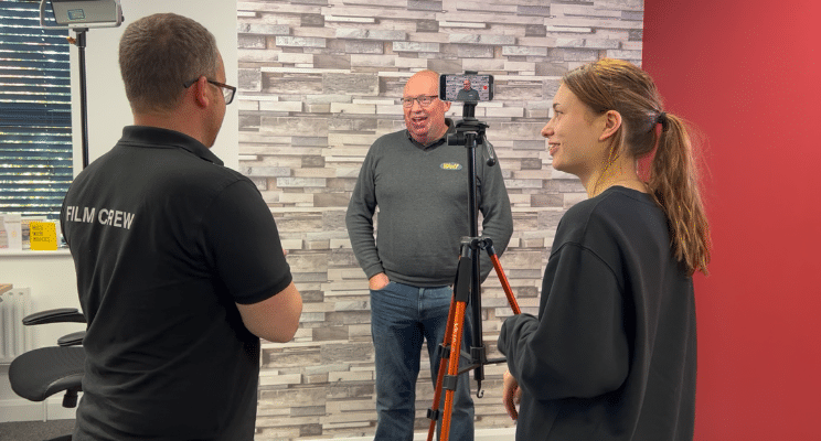 Shot Blast Media offers unique video training courses. The courses are run as a one day programme and are customised to your business requirements. We run the video training courses in small groups of 1-6 delegates from the same company. Situated in our media studio and office environment, the course is crafted to take marketeers, sales teams and company communicators out of their every day and put them through a range of different practical filmmaking and video training exercises. Or if you’d prefer we can travel and deliver the training at your facility.